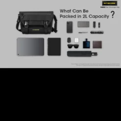The Nitecore SLB02 messenger bag is a lightweight 2L pack that can safely store and carry your essential gear. It is made from 500D polyester fabric with a water resistant coating so you can use it in all weathers.