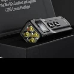 The Nitecore T4K keyring light has an incredible maximum output of 4000 lumens from the 4 x Cree XP-L2 V6 LEDs and is powered by a built-in, 1000mAh li-ion battery. The flashlight is rechargeable via a USB-C port at the base of the torch and comes with a USB-C to USB-A charging cable.