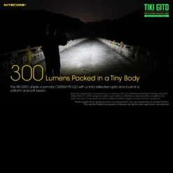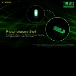 The Nitecore TIKI GITD keyring light features a phosphorescent shell which will glow in the dark. The torch has a maximum output of 300 lumens from the primary OSRAM P8 LED with a reflective optic lens emitting a soft, uniform beam.