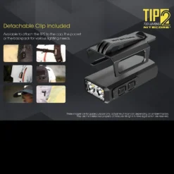 The TIP 2 features a demo mode which automatically turns off after 30 seconds and a daily mode providing long-time illumination. The light offers four brightness levels ranging from 1 to 720 lumens. The keyring torch has a CNC machined, aluminium alloy design which makes the torch lightweight and offers excellent heat dissipation.