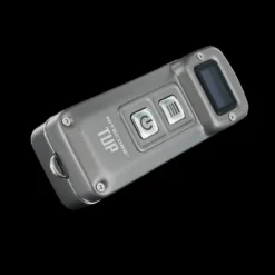 The keyring light offers five brightness levels, ranging from 1 to 1000 lumens, all of which are operated by a dual side switch interface. The TUP features a multi-functional OLED display which provides real-time information on the battery level and voltage, brightness level, user mode and remaining runtime.