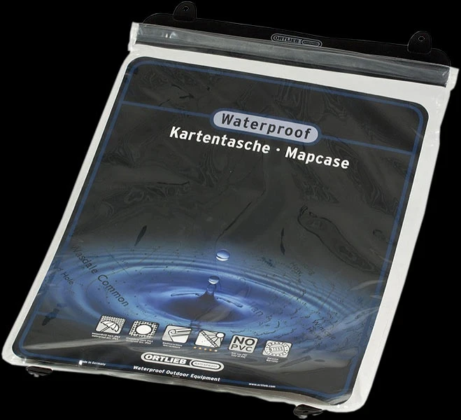 Find your bearing. The transparent Ortleib map case protects your maps from moisture, mud, dirt and UV light. Ideal for hiking, paragliding, canoeing or biking – your map is kept dry and readable from both sides. It may be carried around your neck or secured to your rucksack.