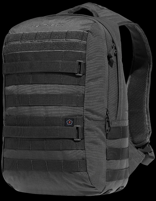 The Pentagon Leon 18hr backpack is the perfect day pack for all the kit you’ll need with out breaking the bank. The main compartment is for all your general gear with an interior mesh pocket and a hydration bladder pocket with hanging parts. The administration compartment features a number of administrative and utility pockets including a tablet pocket padded with EVA and lined with fine tricot. The anatomic shoulder straps with slider adjustable chest strap will keep the pack secure and close to your person during strenuous activity. The back is padded with mesh with anti-slip patches and air ventilation chanels for comfort. The front side is equipped with a generous amount of Molle straps and extra tension straps for apparel and accessories which is adjustable with Hook n loop straps.
