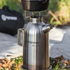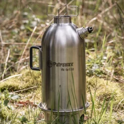 Boiling hot water in a few minutes with the double-walled Petromax Fire Kettle! While branches, barks and pine cones burn and crackle in the fire bowl, the heat of the fire goes up through the inside of the kettle and brings the water inside the wall of the Fire Kettle to the boil. As soon as the water boils, the steam whistle starts whistling. Thanks to the three feet, the Fire Kettle leaves no traces of the fire behind and is steady whatever the surface. Pushing the fire bowl upside down in the kettle makes the Fire Kettle particularly space-saving and easy to transport. There is a choice of 0.5 Litre , 1 or 1.5 Litre capacity.