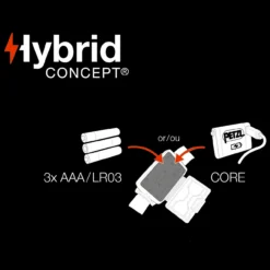 Compact and lightweight, it slides easily into your pocket or a backpack, so you can take it with you anywhere. TIKKINA is supplied with 3 standard AAA batteries and is also compatible with the Petzl CORE rechargeable battery, thanks to its HYBRID CONCEPT design.