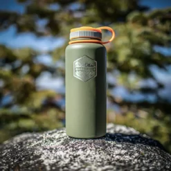 The Prometheus Design Works Insulated water bottle features an All Terrain laser etched design on to the “A-Grade”, double wall, stainless steel surface. The insulated bottle holds 950 litres (32oz) of liquid which is just about 1L, less a sip.