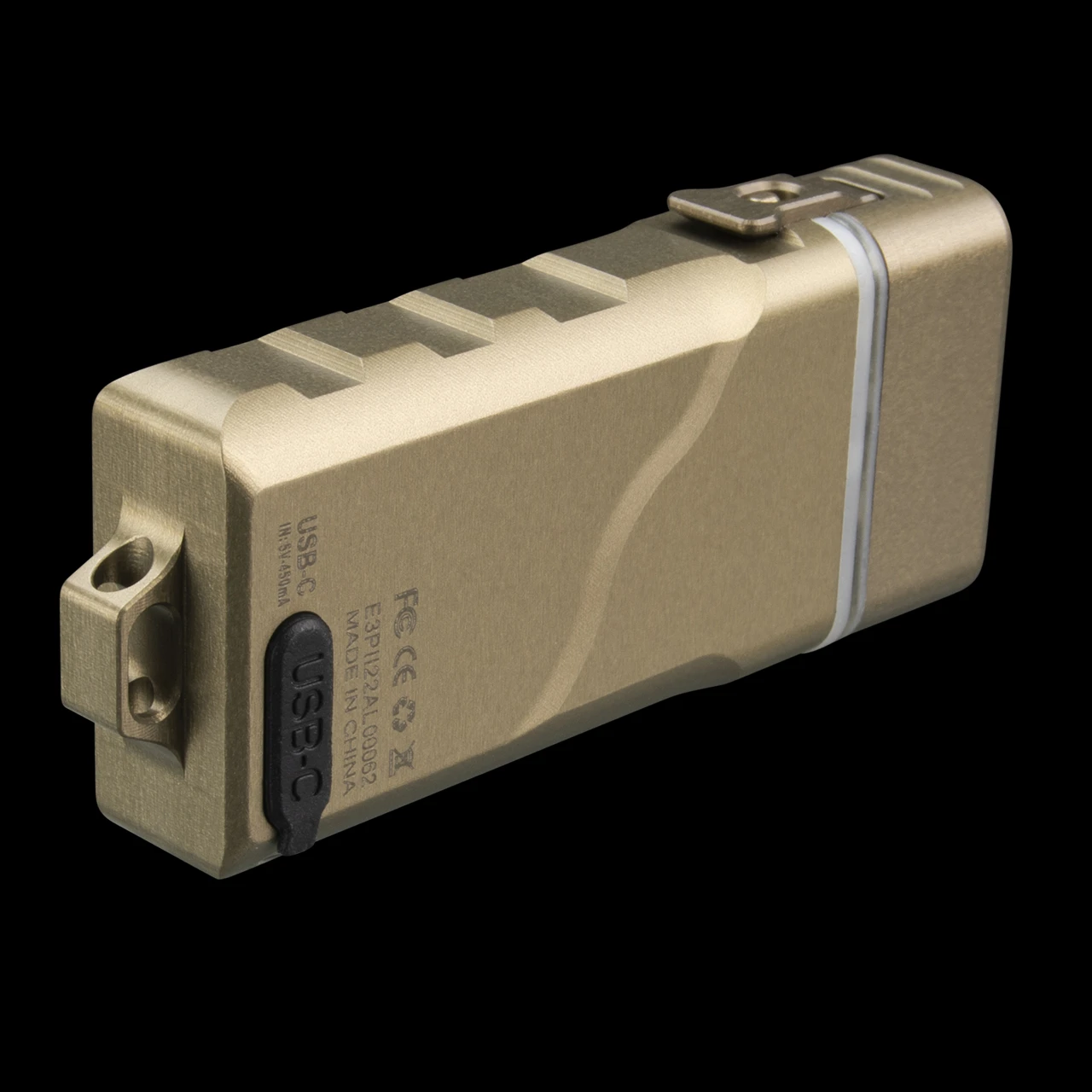 Powered by a built-in LiPo battery, charged via either the built-in USB-C port or a replaceable AAA battery available separately.
