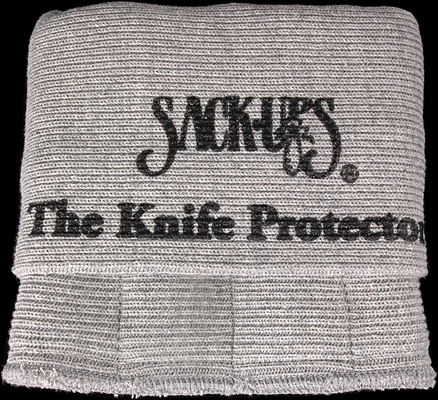 Silicone treated grey cotton knife roll holds knives which measure up to 5in closed.