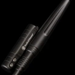 With the military and law enforcement communities in mind, the Smith & Wesson Tactical Pen is made with CNC machined, 6061 T-6 aluminum , making it tough and resistant to wear and tear. Not only is this pen an attractive writing instrument but due to its pointed design can be used as a PDA stylus. It has a screw cap and a stainless steel pocket clip. Supplied with a black refill.