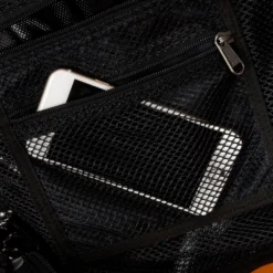 Mesh interior storage compartments on the lid and at either end of the bag improve versatility and help with organisation.