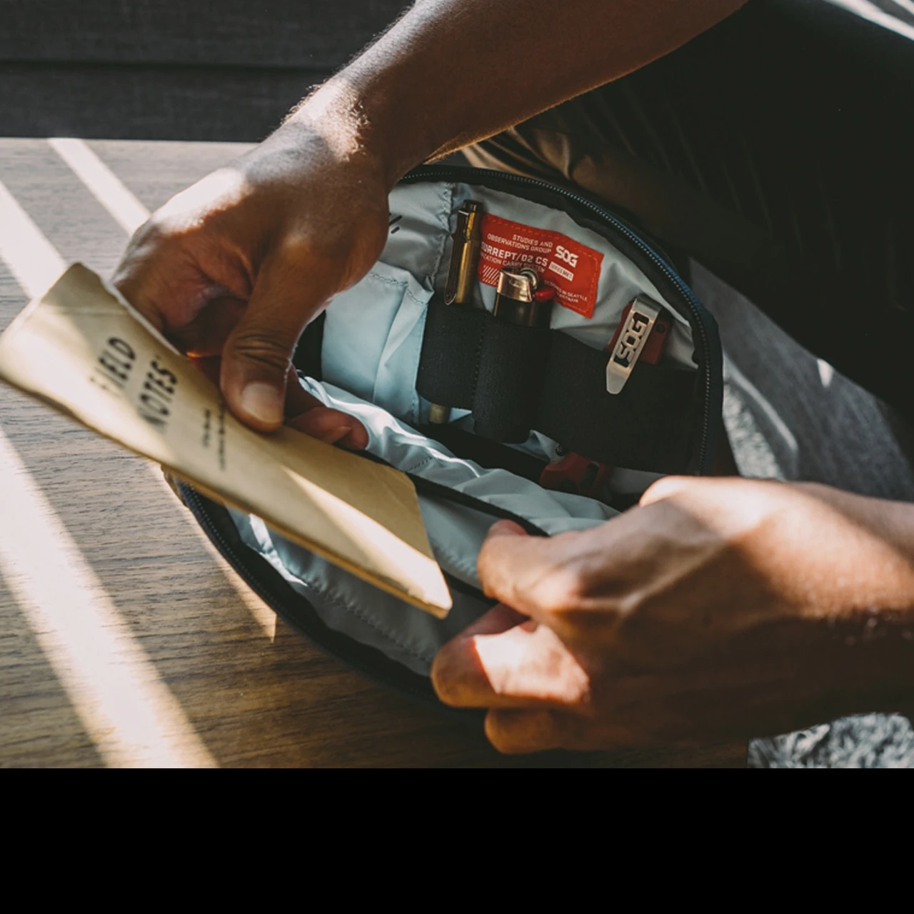 The SOG Surrept/02 CS is a small storage pouch made to organize every-day gear, travel essentials, or tech accessories with elastic organization and a removable center divider.