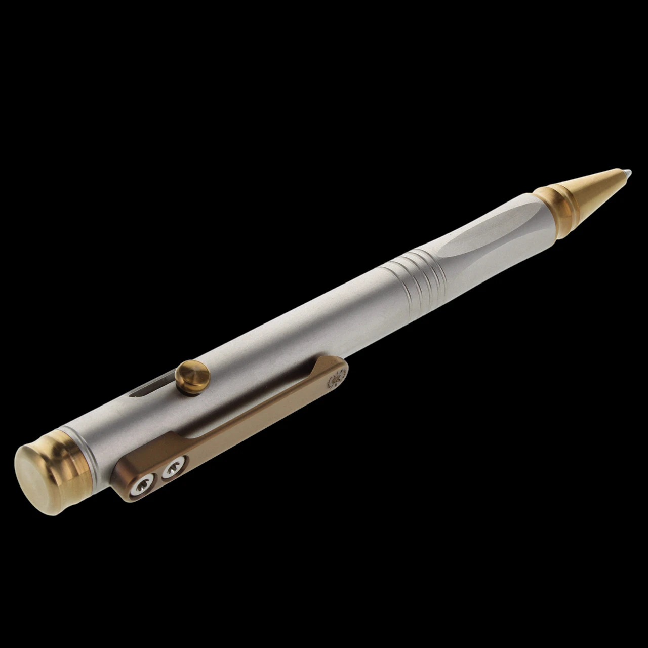 The main body of the pen is Titanium with very attractive bronze anodised tip, pocket clip, bolt action button and butt cap. The writing end has been carefully sculpted on both the body and nib to enhance the writing experience. Custom springs ensure a smooth bolt action engagement that is not too stiff. Finally, Spartan Blades have used a Schmidt Technology easy FLOW 9000 M pressurized cartridge for writing in any situation.
