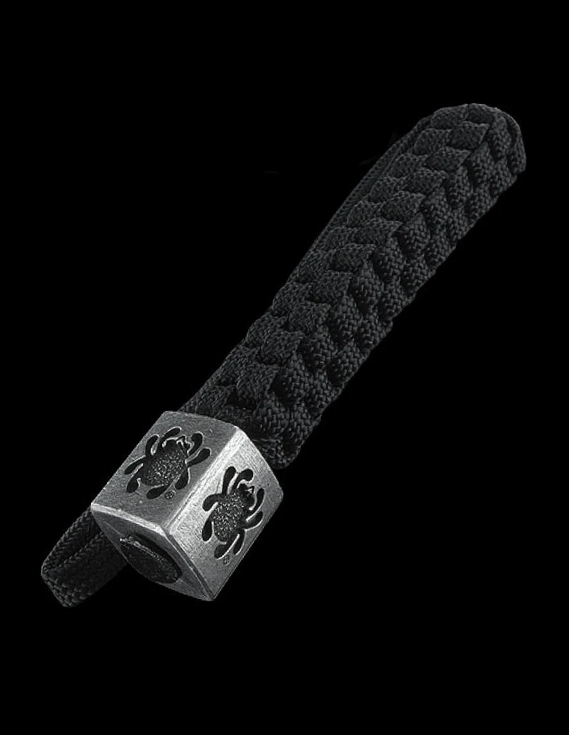 Spyderco logo ½” square pewter accessory bead with 7-inch round-weave black Paracord Lanyard. Ready to thread through the lanyard hole of your favourite knife.