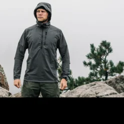 The SX material is wind resistant while its high quality DWR finish provides light rain protection without impacting breathability. Elastic cuffs and a bottom hem drawcord allow the Aerie SX Anorak to be sealed tight to the body ensuring wind and loose debris cannot penetrate.