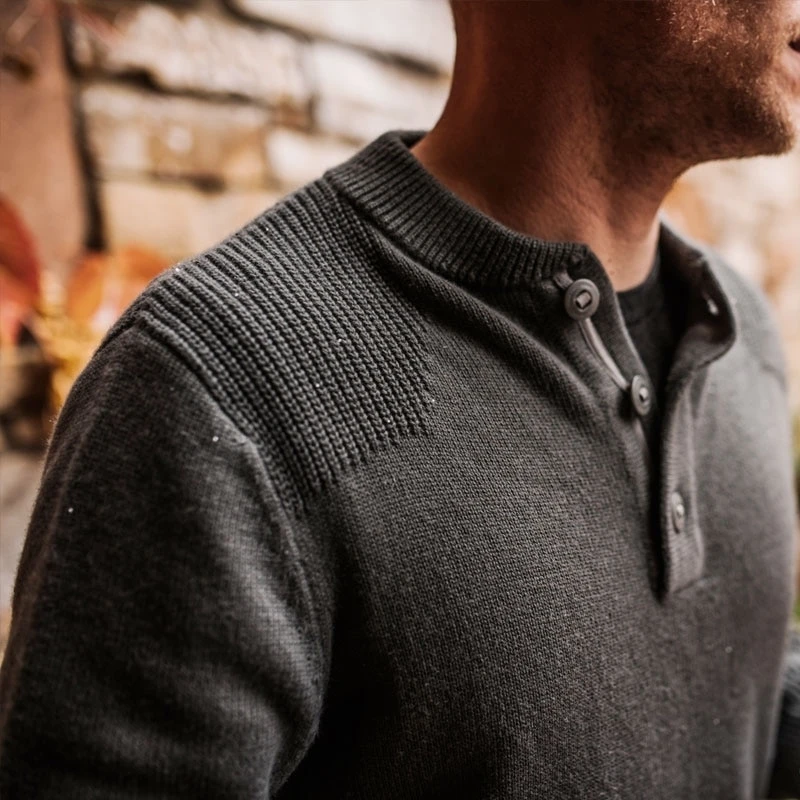 Ribbed panelling along the shoulders, collar, and underneath the arm provide a subtle contrast to the Journeyman’s jersey body. The distinctive V-neck placket of the A-1 has been updated with our signature slotted buttons for greater functionality.