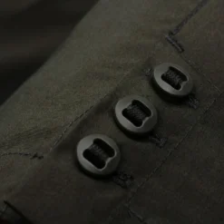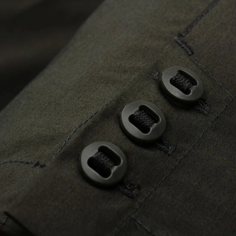- TAD signature slotted buttons at front and functional cuff closures
