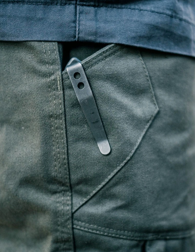 Top-entry hand pockets feature internal welt pockets for separating carried gear, coin pockets, and hidden webbing loops to secure keys or other small items. Cleanly welted rear pockets round out the basic storage assortment.