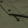 Two clean welt pockets on the chest and a hidden envelope pocket are perfect for small E&E items. The buttons are safely secured along bartacked webbing and include a slotted button that rotates onto the webbing for quick field repair.
