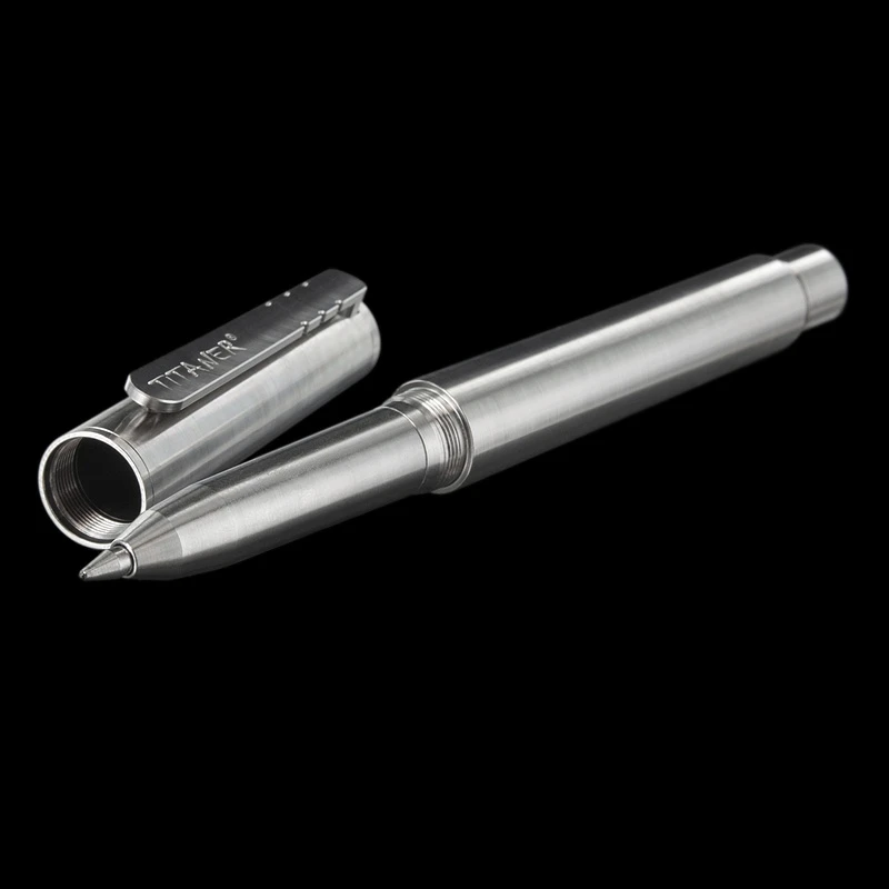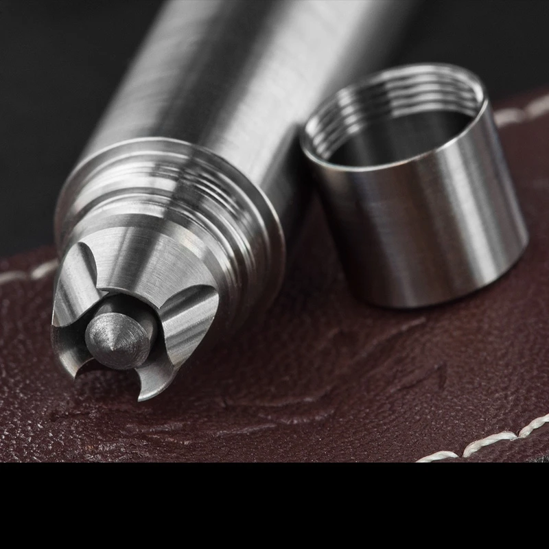 The Titaner Lotus titanium pen is a robust, precision manufactured Titanium Tactical Pen CNC machined from a solid titanium rod. This is a stylish writing tool that will certainly get heads turning. It is supplied with a Pilot G2 black fine point roller ball refill which only adds to the writing pleasure of this extraordinary pen. The end cap unscrews to reveal a window breaker.