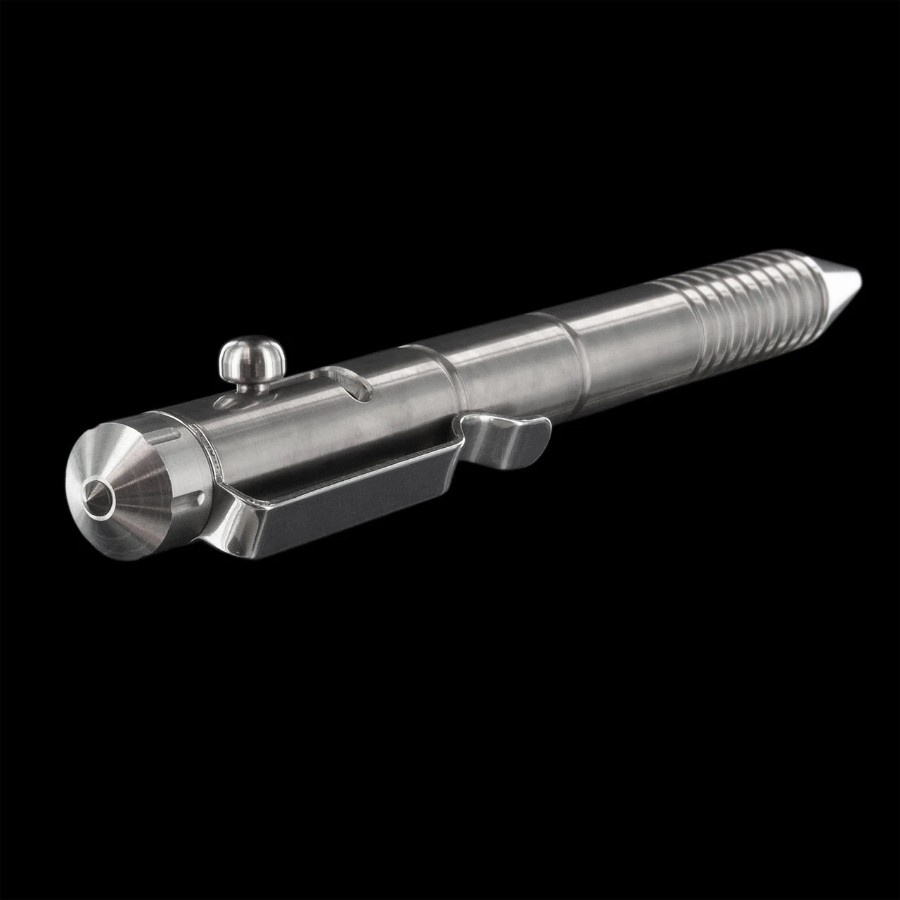 The TiTech T57 is a tactical pen with an “unputdownable” bolt action which engages the rollerball point. There is also a window breaker on the opposite end for those emergency situations.