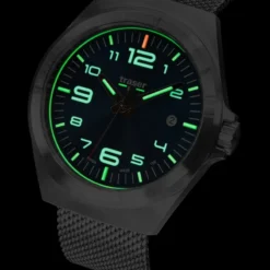 The face is illuminated using a combination of trigalight and Super-LumiNova meaning you will always be able to tell the time in the dark. The case is stainless steel whilst the glass is anti-reflective, anti-scratch sapphire, meaning it will take the knocks of a hectic lifestyle.