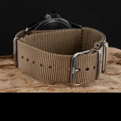 Supplied with a 22mm khaki-coloured NATO webbing strap.