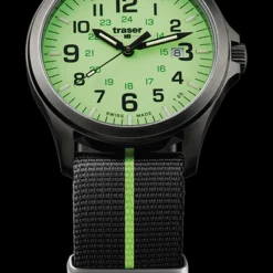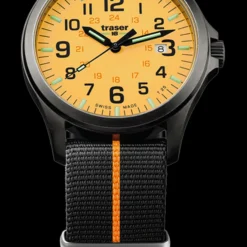 Traser H3 P67 watches belong to a long history of functional, reliable and stylish military watches. For clarity, time keeping and no fuss aesthetics there are non better. The Traser H3 P67 Officer Pro GunMetal features a gun metal stainless casing and Tritium vials to illuminate the time points. The watch faces feature Super-LumiNova which make the entire face glow after exposure to light. There is a choice of either ornage or lime green, both with a NATO strap.