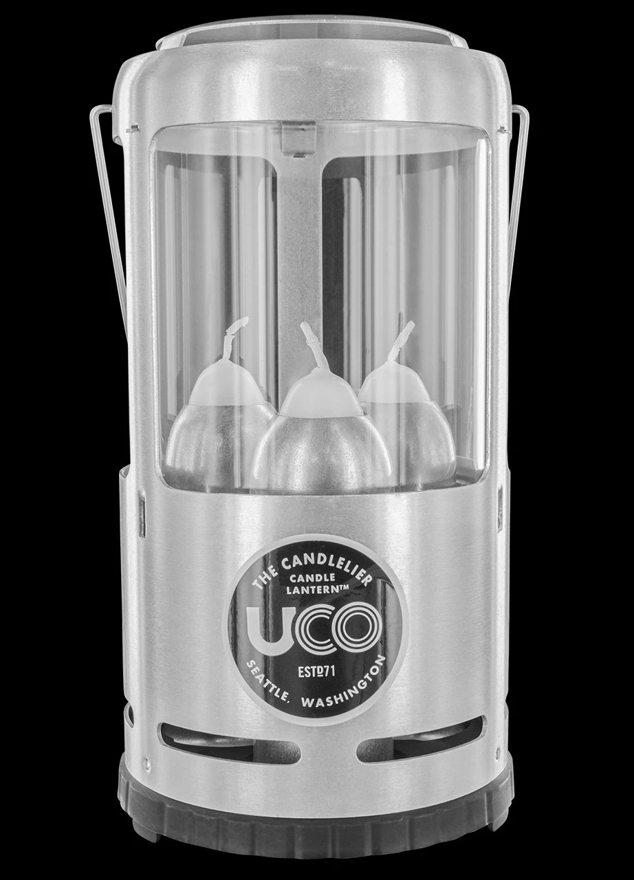 Need more lumens? Amp up the brightness and fend off chill with the UCO Candlelier Candle Lantern. Sporting three 9-hour candles, this brilliant source of heat and light is perfect for large groups of campers and for home and emergency use. Use this windproof lantern to brighten up your next family picnic plus keep your coffee hot, too. Just place your mug or cooking pot on the heat shield and—voila! The Candlelier cleverly heats small amounts of water or food while providing a warm, ambient glow to your campsite or porch.