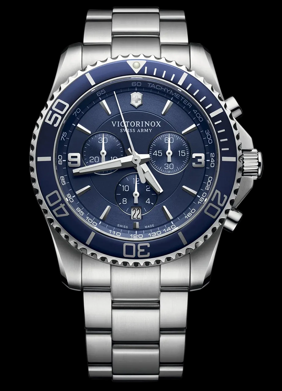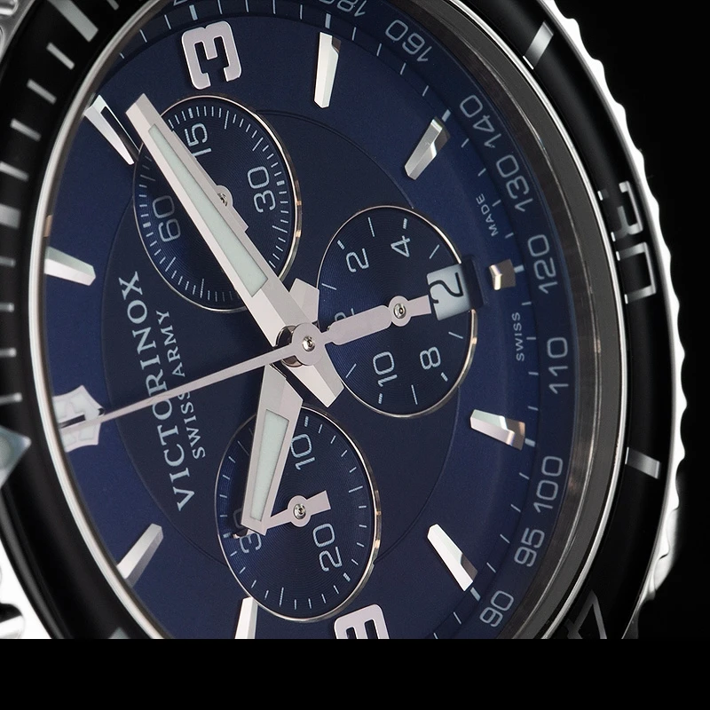 The Victorinox Maverick Chronograph is the perfect blend of elegance and function – that’s one of many features you’ll find in this exceptional watch that does it all. Its Swiss-made quartz movement makes it a reliable daily companion. Its stainless steel case and triple-coated anti-reflective sapphire crystal make it incredibly tough. But what stands out most is the way the Maverick remains so effortlessly elegant in every situation. Just like those who wear it.