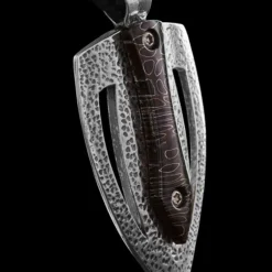 Damascus steel was a term used by several Western cultures from the Medieval period onward to describe a type of steel created in India and used in swordmaking from about 300 BC to 1700 AD. These swords were characterized by distinctive patterns of banding and mottling reminiscent of flowing water. Such blades were reputed to be not only tough and resistant to shattering, but capable of being honed to a sharp and resilient edge. William Henry’s damascus is made is made from several types of steel welded together to form a billet. The patterns vary depending on how the damascus artist works the billet. The billet is drawn out and folded until the desired number of layers are formed. William Henry damascus billets are forged with a minimum of 300 layers. William Henry works with a handful of the very best damascus artists/forgers in the U.S.