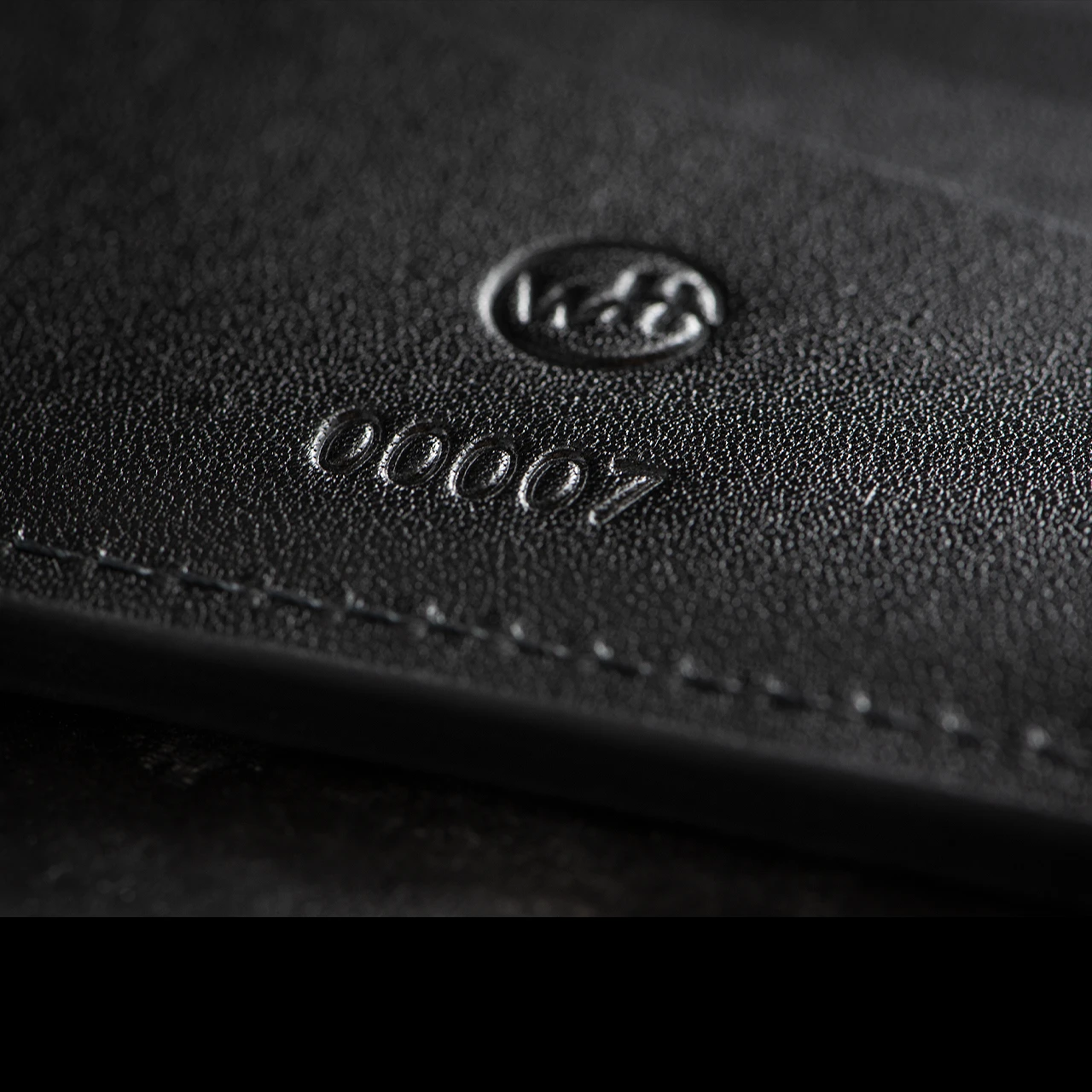 Each piece is embossed with its own unique serial number, and every section features an RFID lining to safeguard your personal information.
