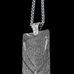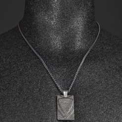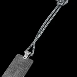 This is what William Henry do. Amazing materials, simple and elegant design, exceptional craftsmanship. The William Henry P33 Damascus Forge Pendant will wear as beautifully and sensibly in 100 years as it does today. Offered in hand-forged and sculpted damascus steel with a sterling bail on a stainless chain.