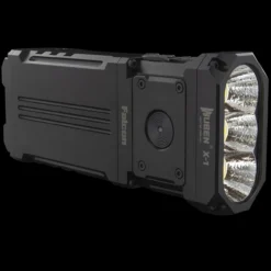 The Wuben X1 Falcon is a chunky powerhouse of a lighting tool! Three Cree XHP70.2 LEDs deliver a blinding 12,000 lumen light and a 3,000 lumen strobe. It is so powerful that the 12000 lumen output produces so much heat the system has to drop to 3,000 lumens to prevent overheating. After a couple of seconds it is ready to go again.